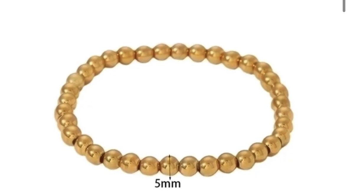 Βραχιόλι Από Ανοξείδωτο Ατσάλι Με Ελαστικό Βραχιόλι Με Χάντρες Σε Χρώμα Χρυσό 5mm