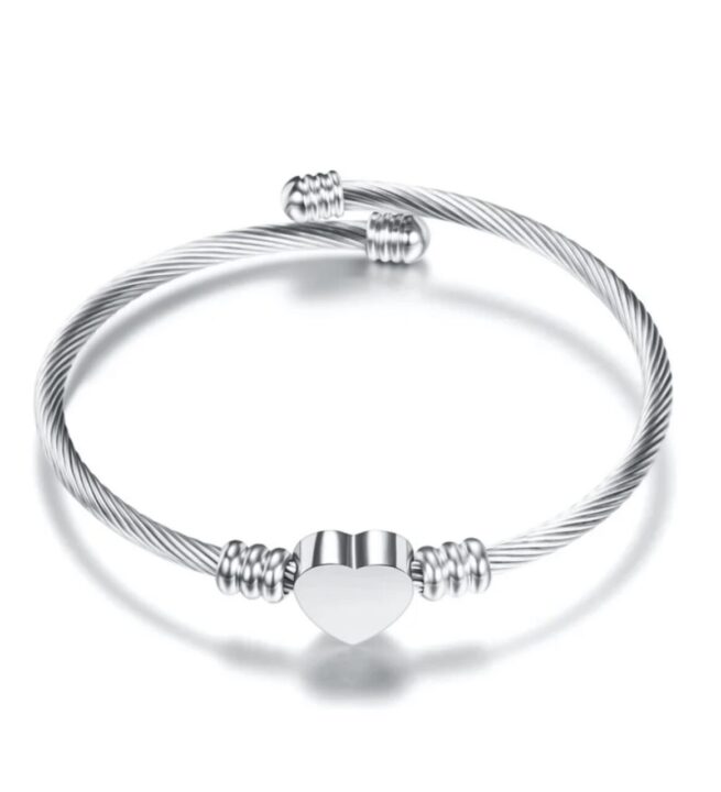 Βραχιόλι Από Ανοξείδωτο Ατσάλι Με Καρδιά Σε Χρώμα Ασημί