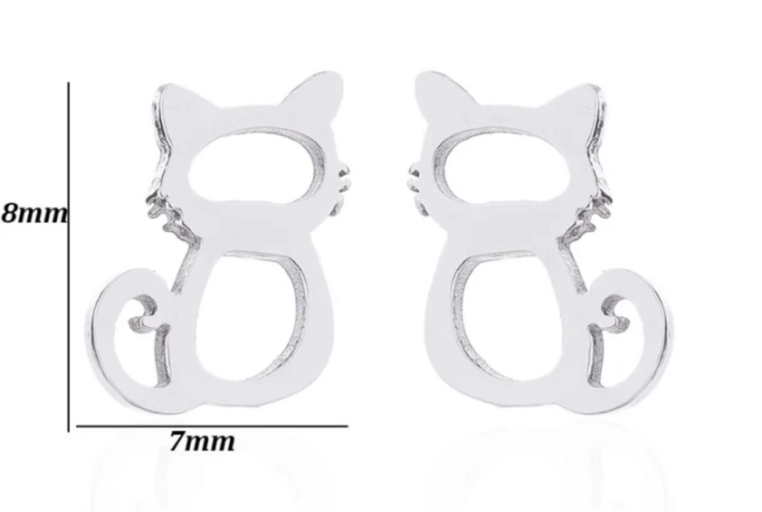 Παιδικά σκουλαρίκια από ανοξείδωτο ατσάλι , σε σχήμα γατούλας , χρώμα ασημί