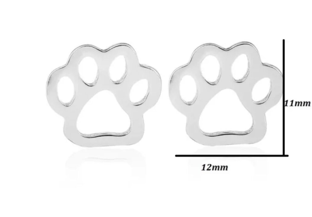 Παιδικά σκουλαρίκια από ανοξείδωτο ατσάλι , σε σχήμα πατούσες σκύλου , χρώμα ασημί