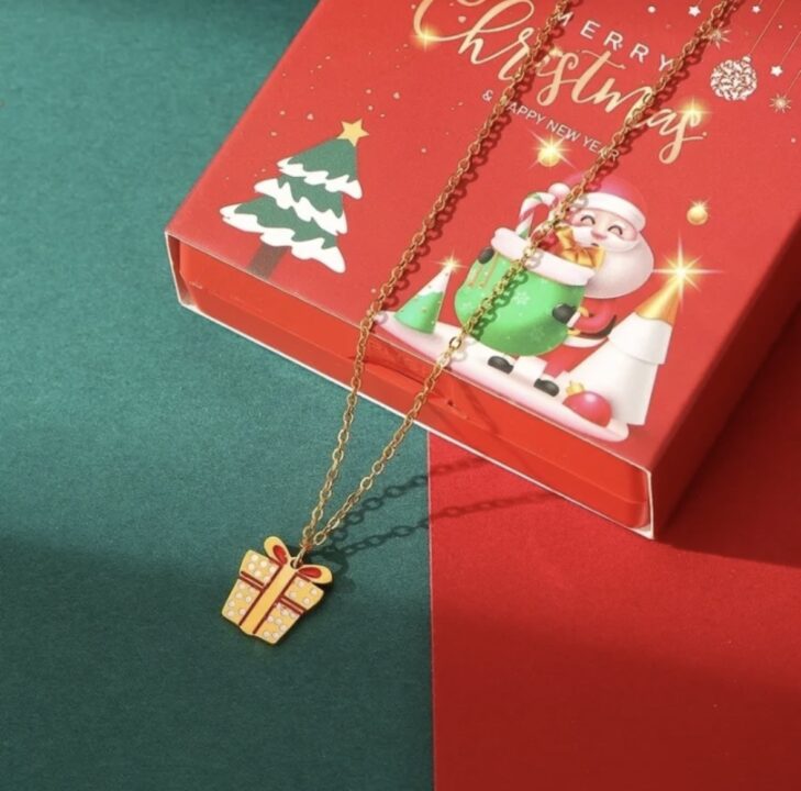 Χριστουγεννιάτικο Κολιέ Από Ανοξείδωτο Ατσάλι Σε Σχήμα Δώρου